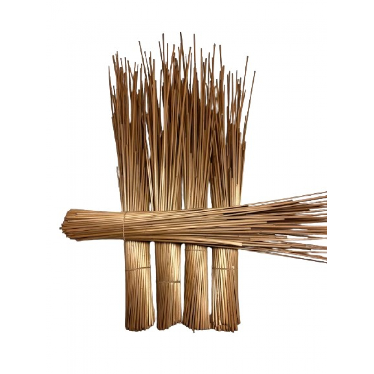 Dans une botte de paille vieillie d'environ 50g vous pouvez retrouver 70 à 80 brins dont la longueur varie de 10 à 60 cm environ et le diamètre de 2 à 5 mm. Pour 1 m² vous aurez besoin de 200 à 250g de paille . Avec 50 g vous pouvez réaliser 0.25 m²