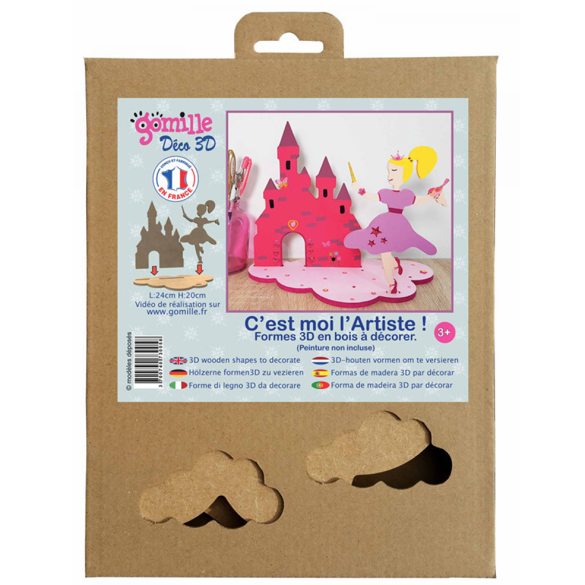 Cette déco 3D Fée Chateau contient 3 éléments en bois (socle, fée, chateau), très facile à monter, un beau décor féérique en 3D !