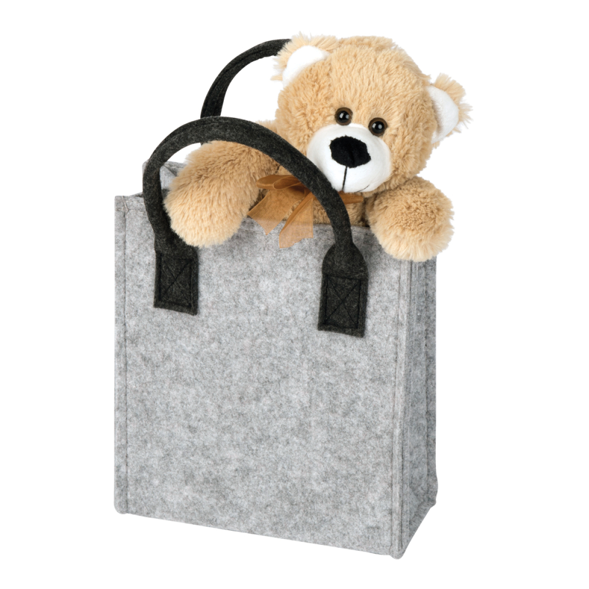 Sac en feutre rectangulaire au design épuré, coloris gris clair. Doté de deux anses gris clair pour un contraste élégant et une prise en main confortable. Léger, robuste et polyvalent, il convient parfaitement pour le shopping, le bureau ou le rangement à la maison avec une touche moderne.